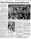 Philadelphia Inquirer, March 27, 2002: “Fiery Protestant pastor laid to rest”