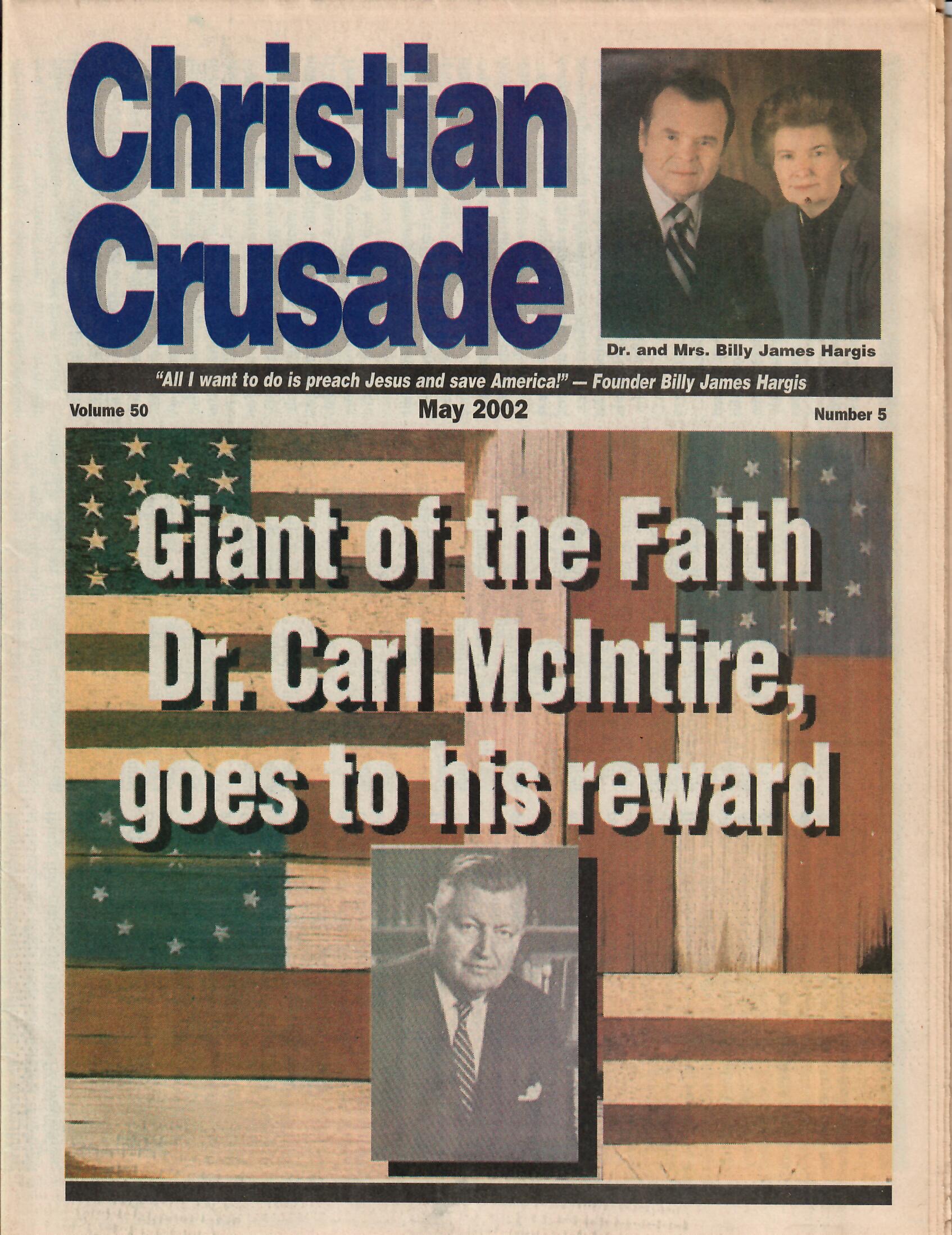 Christian Crusade, May, 2002: “Giant of the Faith, Dr. Carl McIntire, Goes to His Reward”